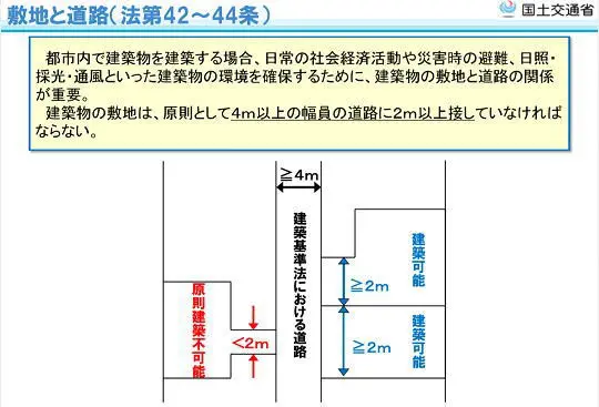 建築基準法で定める接道義務を果たさない土地には、住宅を建てることはできません。